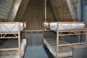 - 8 heated cabins that accommodate up to 26 people each (total capacity of 208 beds). Each cabin includes 2 bathrooms and 2 showers.